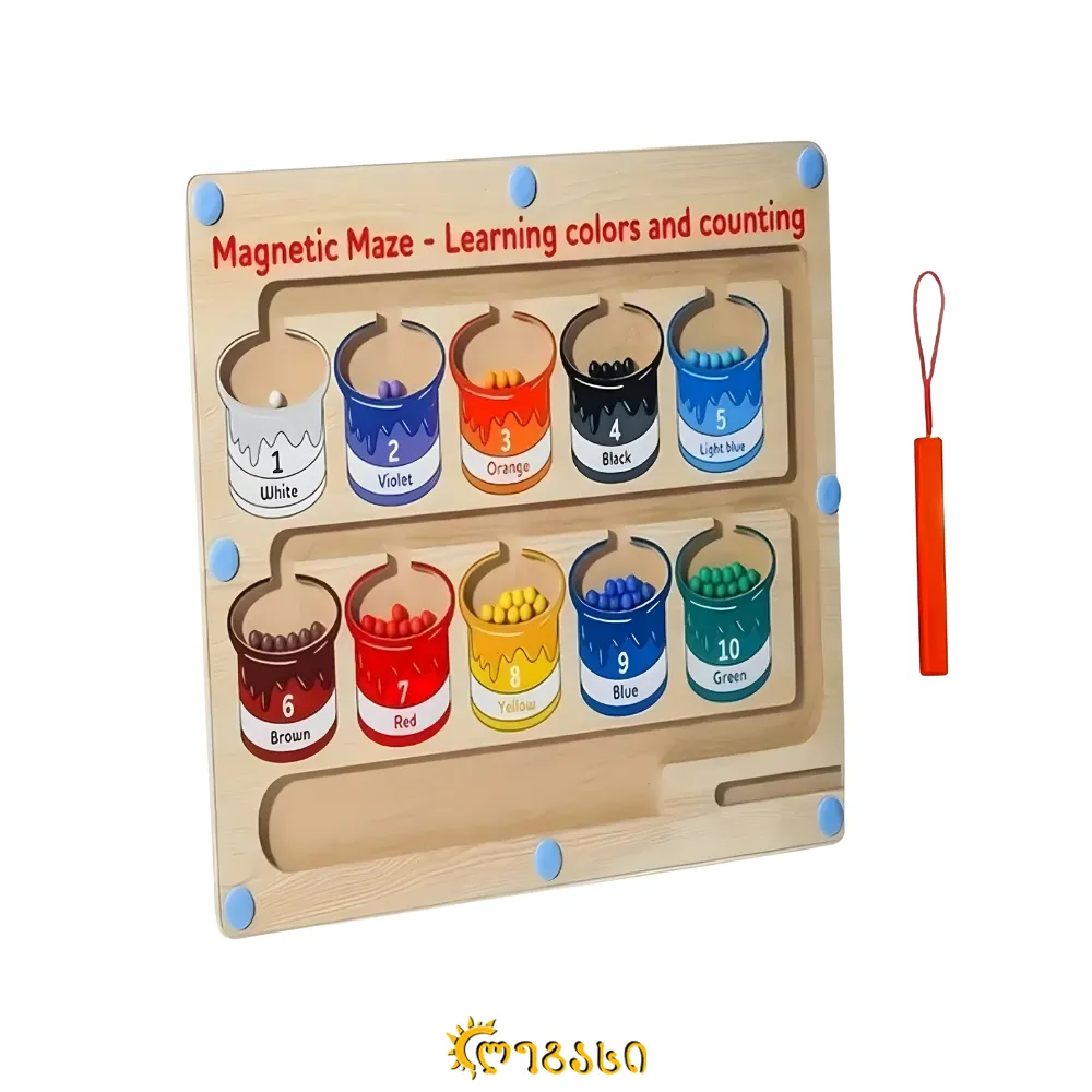 მაგნიტური ფერების დასათვლელი ლაბირინთი – ხის საგანმანათლებლო სათამაშო პატარებისთვის