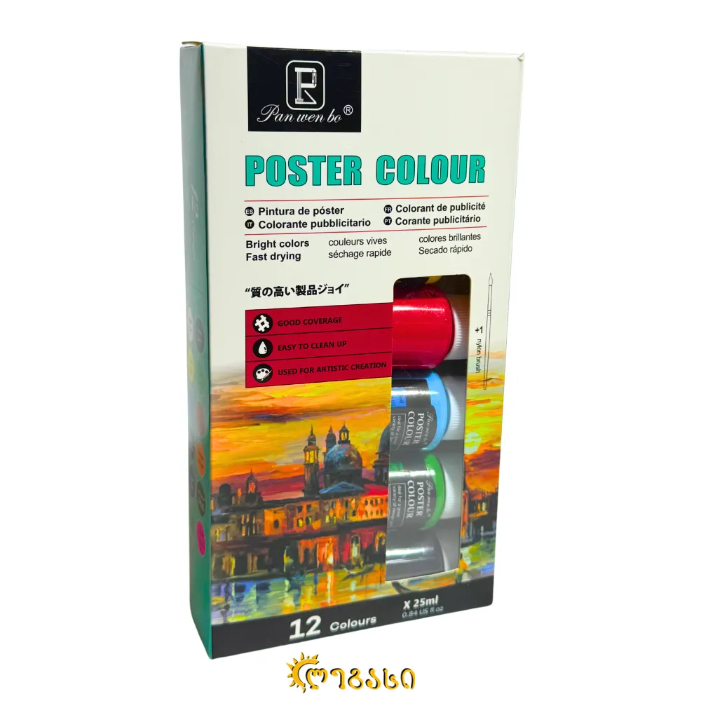 პლაკატის საღებავი (12 ფერი) POSTER COLOUR