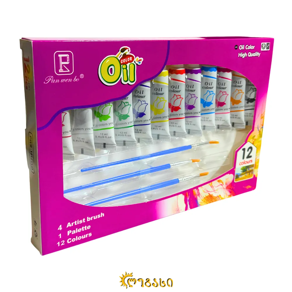 ზეთოვანი საღებავი ფუნჯებითა და პალიტრით (12 ფერი) PWB-1212YLO