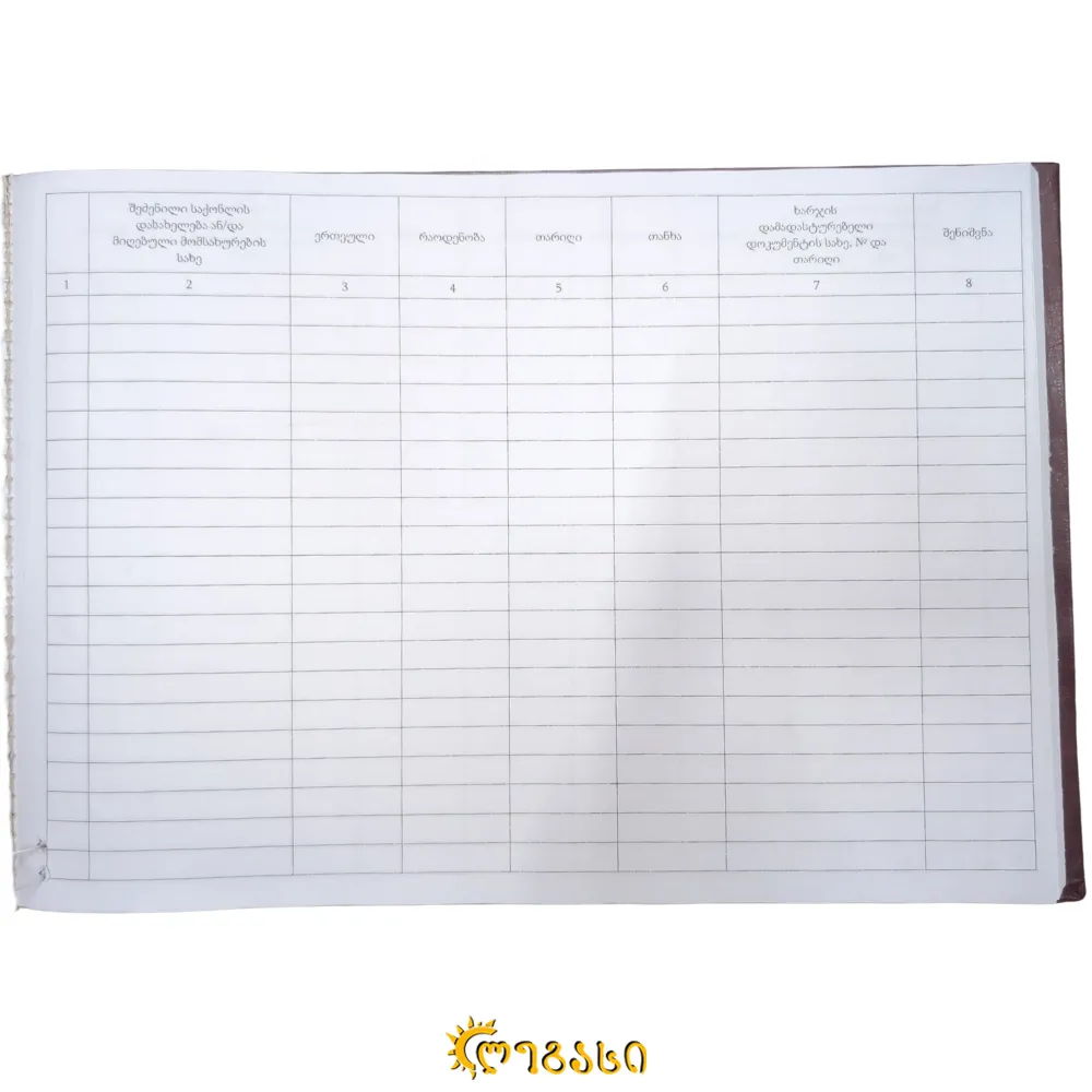 შემოსული საქონლის აღრიცხვის ჟურნალი