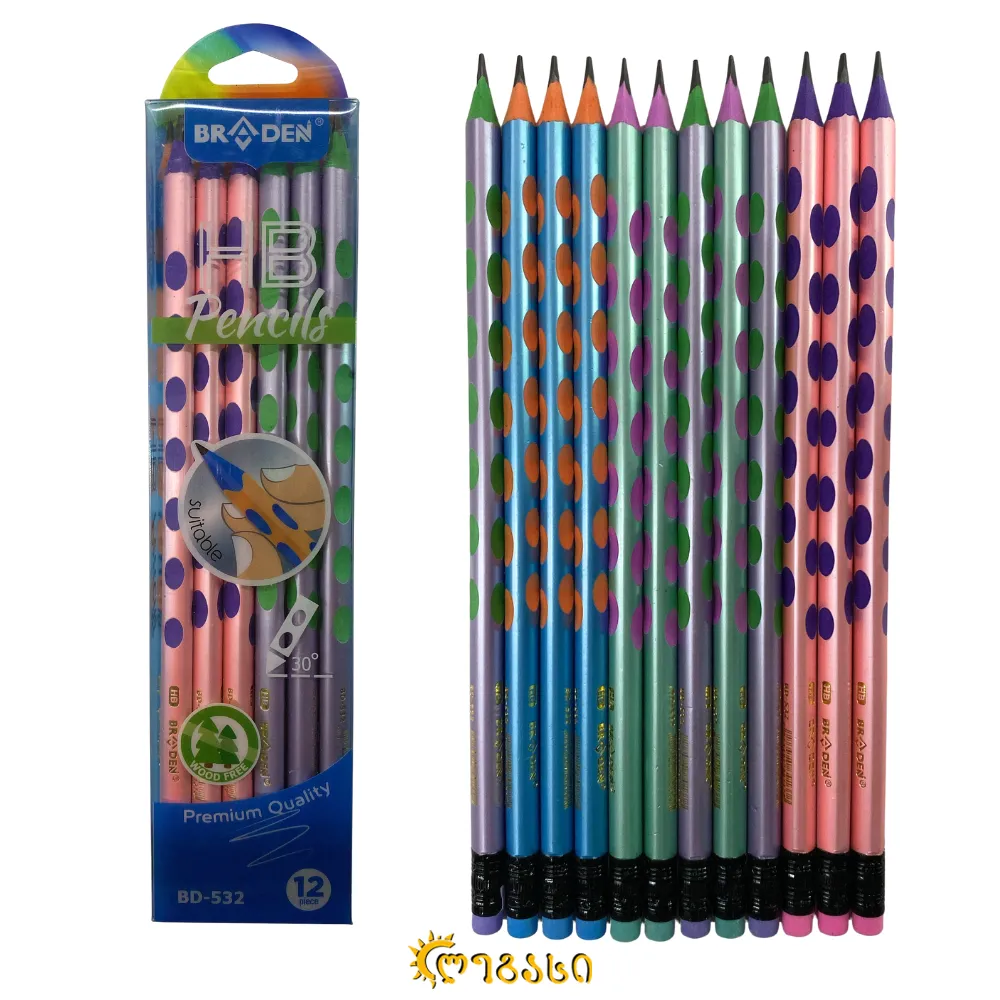 უბრალო ფანქარი ნომრიანი საშლელით 12-ც. HB
