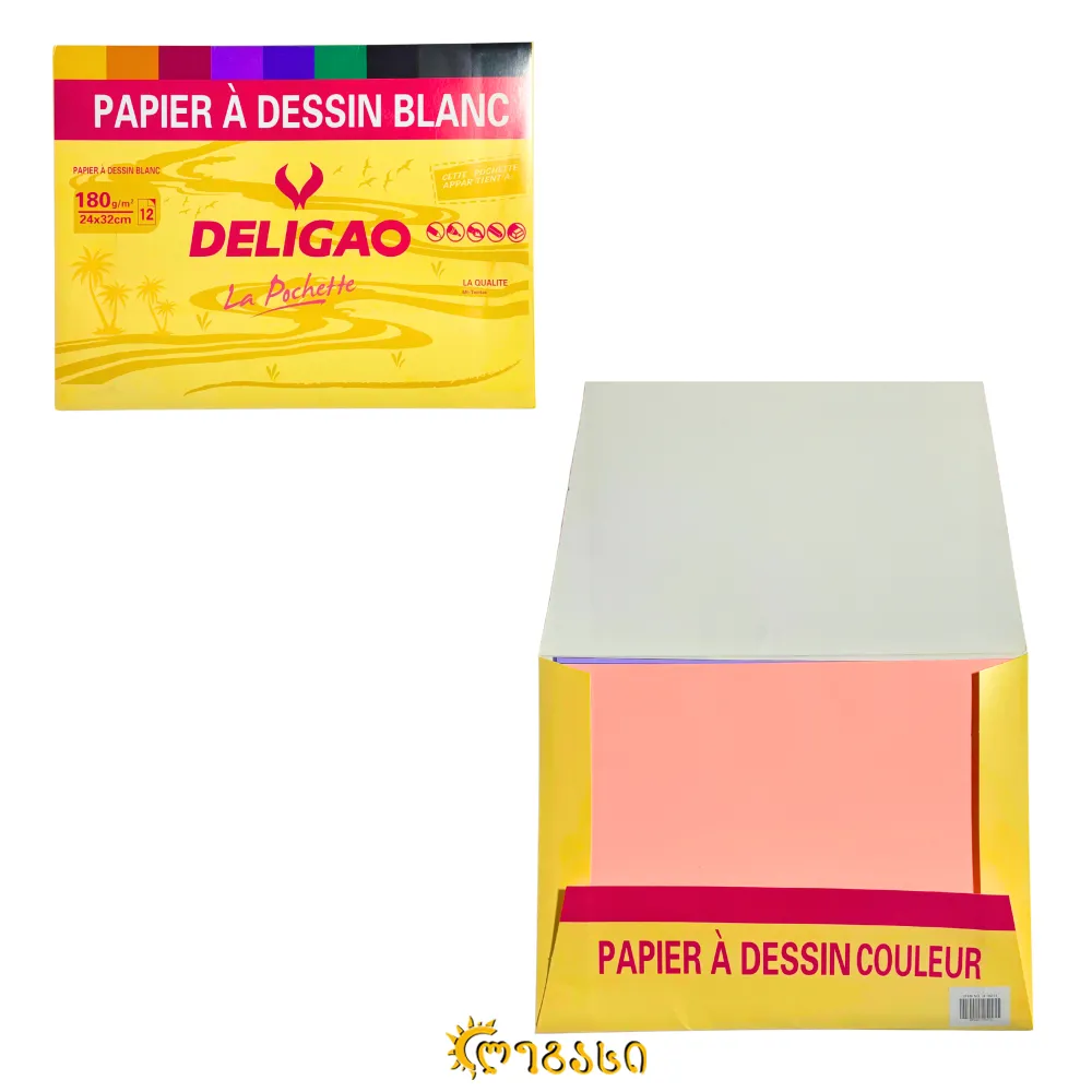 ფერადი ქაღალდის ნაკრები (12 ფერი) 24X32 სმ