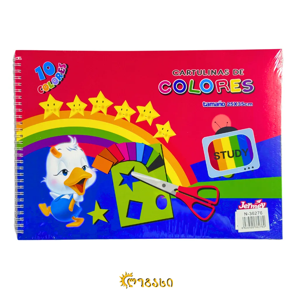 მუყაოს ფერადი ქაღალდის ნაკრები (10 ფერი) 25X35 სმ