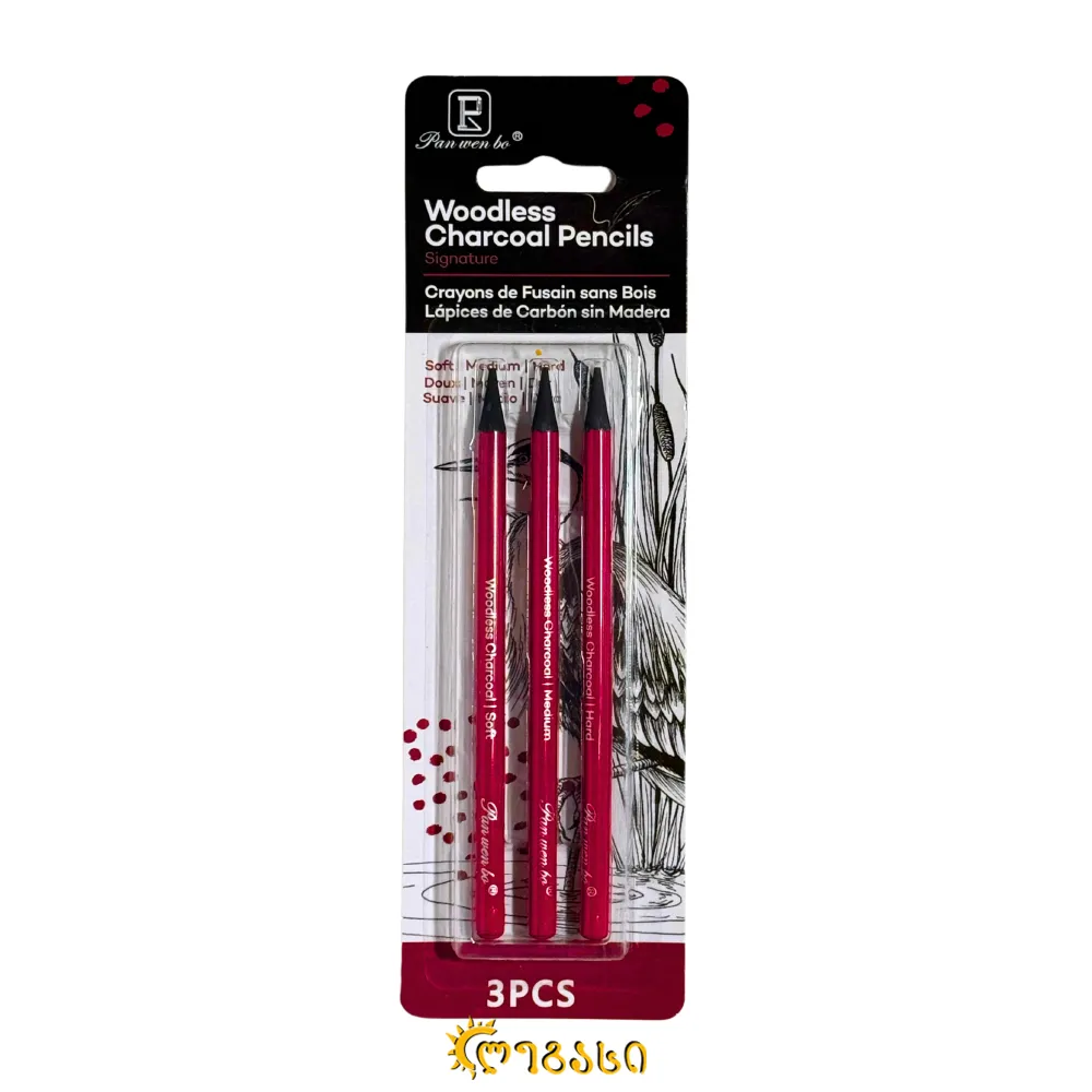 სამხატვრო ფანქრების ნაკრები WOODLESS CHARCOAL PENCISL (3 PCS)