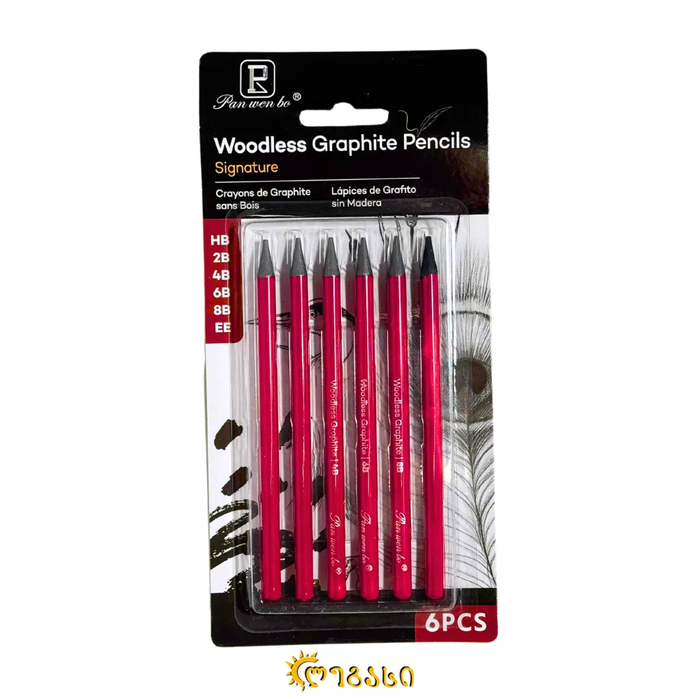 სამხატვრო ფანქრების ნაკრები WOODLESS GRAPHITE PENCILS (6 PCS)
