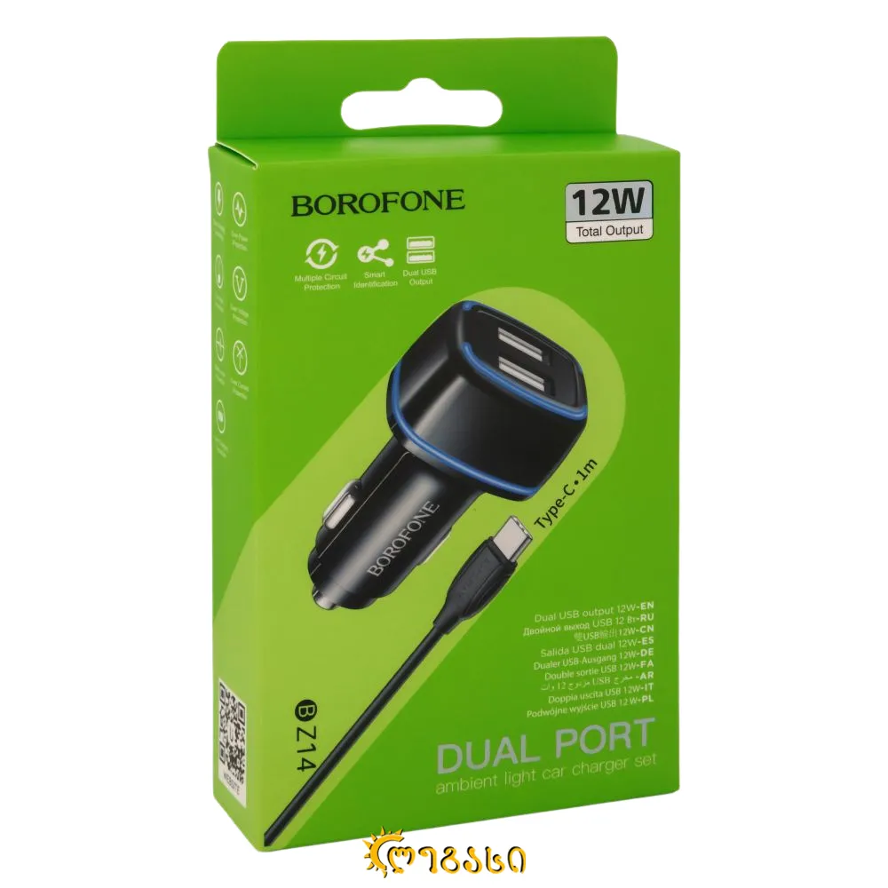 Borofone BZ14 არის სტილური და ფუნქციური მანქანის დამტენი, რომელიც უზრუნველყოფს სწრაფ და უსაფრთხო დამუხტვას. მოწყობილობას აქვს ორი USB პორტი და საერთო გამომავალი სიმძლავრე 12W, რაც საშუალებას იძლევა ერთდროულად ორი მოწყობილობის დამუხტვა. დამზადებულია ცეცხლგამძლე ABS+PC მასალისგან, რაც ზრდის უსაფრთხოებას და გამძლეობას.