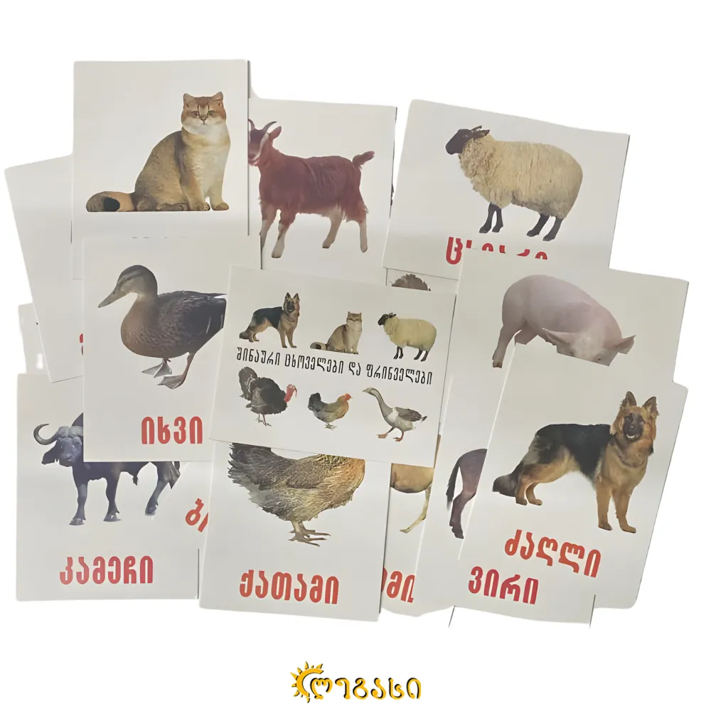 ბარათები გარეული ფრინველები - შინაური ცხოველები და ფრინველები - ბოსტნეული ბაღჩეული