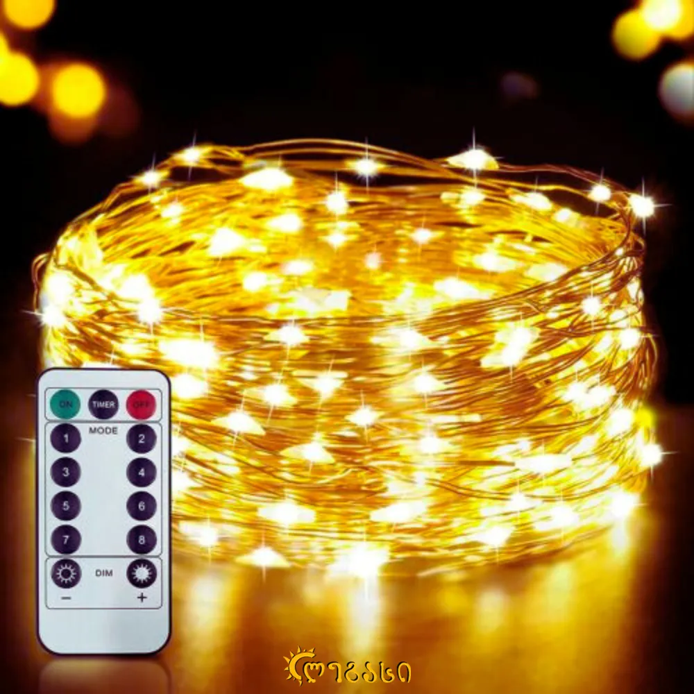 წერტილოვანი განათება 100 მეტრი WR თბილი ნათება (ნათების რეჟიმები დისტანციური მართვით)