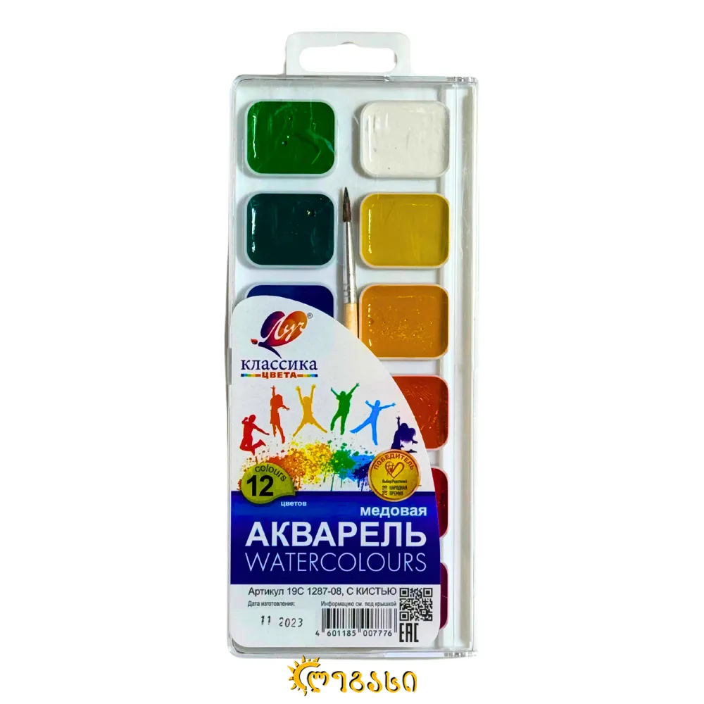 აკვარელი (12 ფერი) ფუნჯით LUCH "Classic”