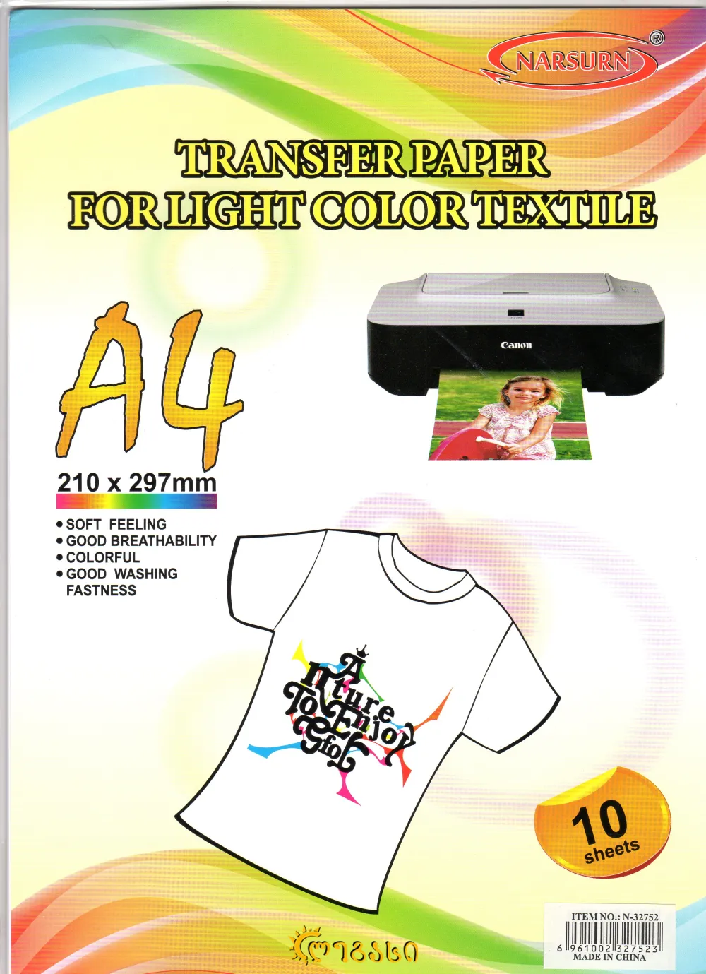 ტრანსფერული ფოტო ქაღალდი A-4 10-ცალიანი TRANSFER PAPER FOR LIGHT COLOR TEXTILI