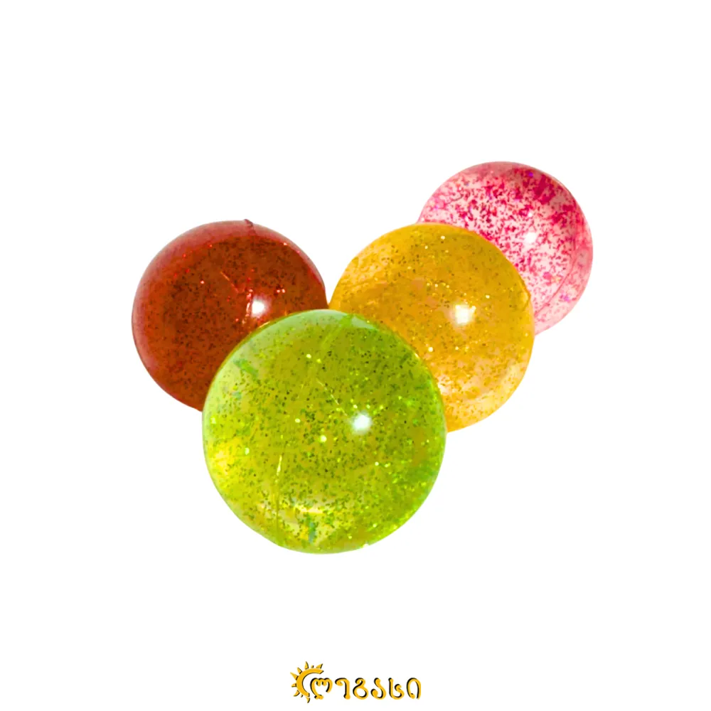 კაუჩუკის ფერადი ბურთები, ოთხ სხვადასხვა ფერში.