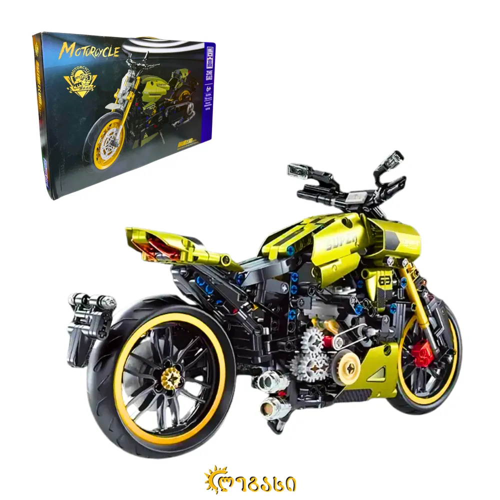 756 ნაწილისგან შემდგარი, ლეგოს ტიპის ასაწყობი სათამაშო მოტოციკლი.