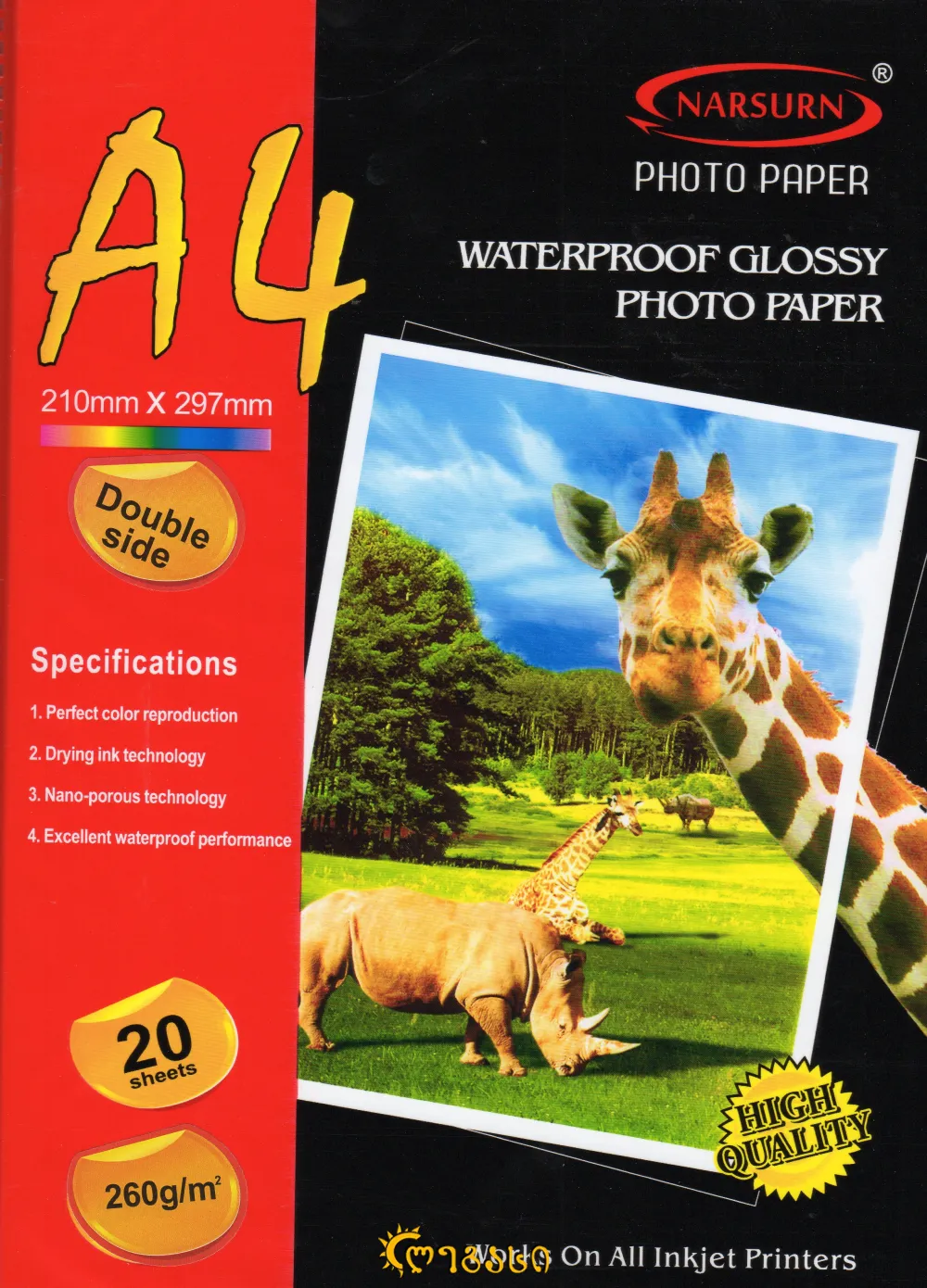 ფოტო ქაღალდი ა-4 ორმხრივი 20-ც. 260-გრ. WATERPROOF GLOSSY PHOTO PAPER DOUBLE SIDE