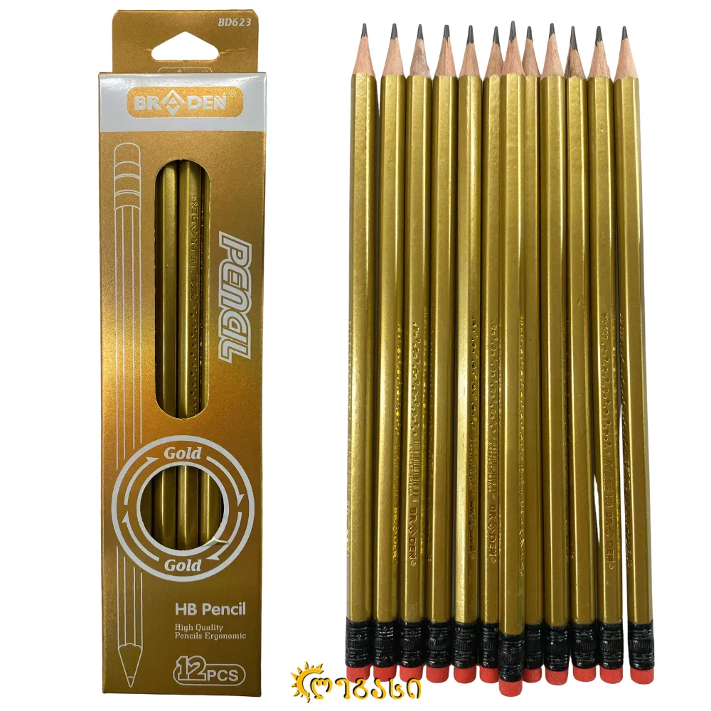 უბრალო ფანქარი ნომრიანი საშლელით (12ც.) HB