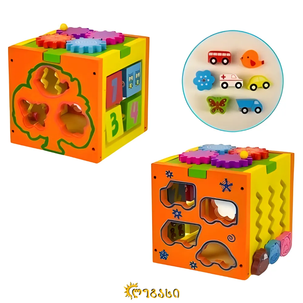 მულტიფუნქციონალური ხის სათამაშოთა კუბი