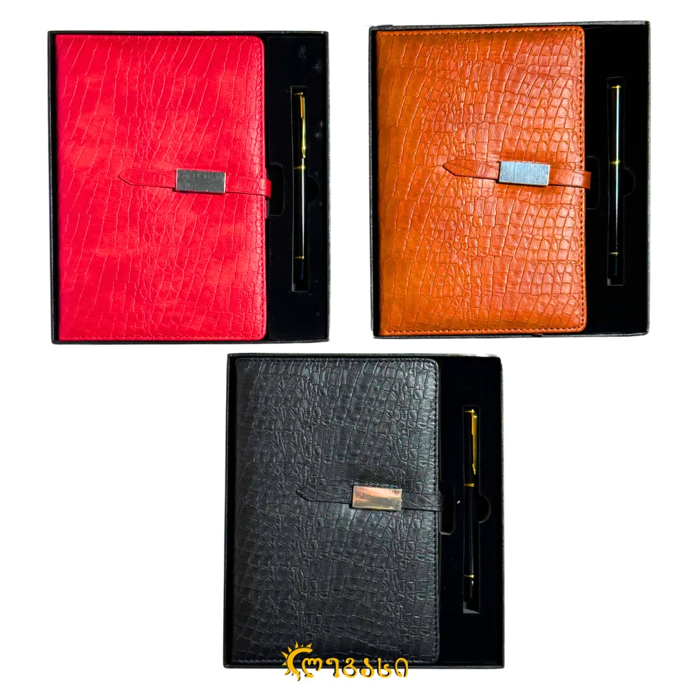 სასაჩუქრე ბლოკნოტი (უჯრებიანი) საწერი კალმით (21X14 სმ)