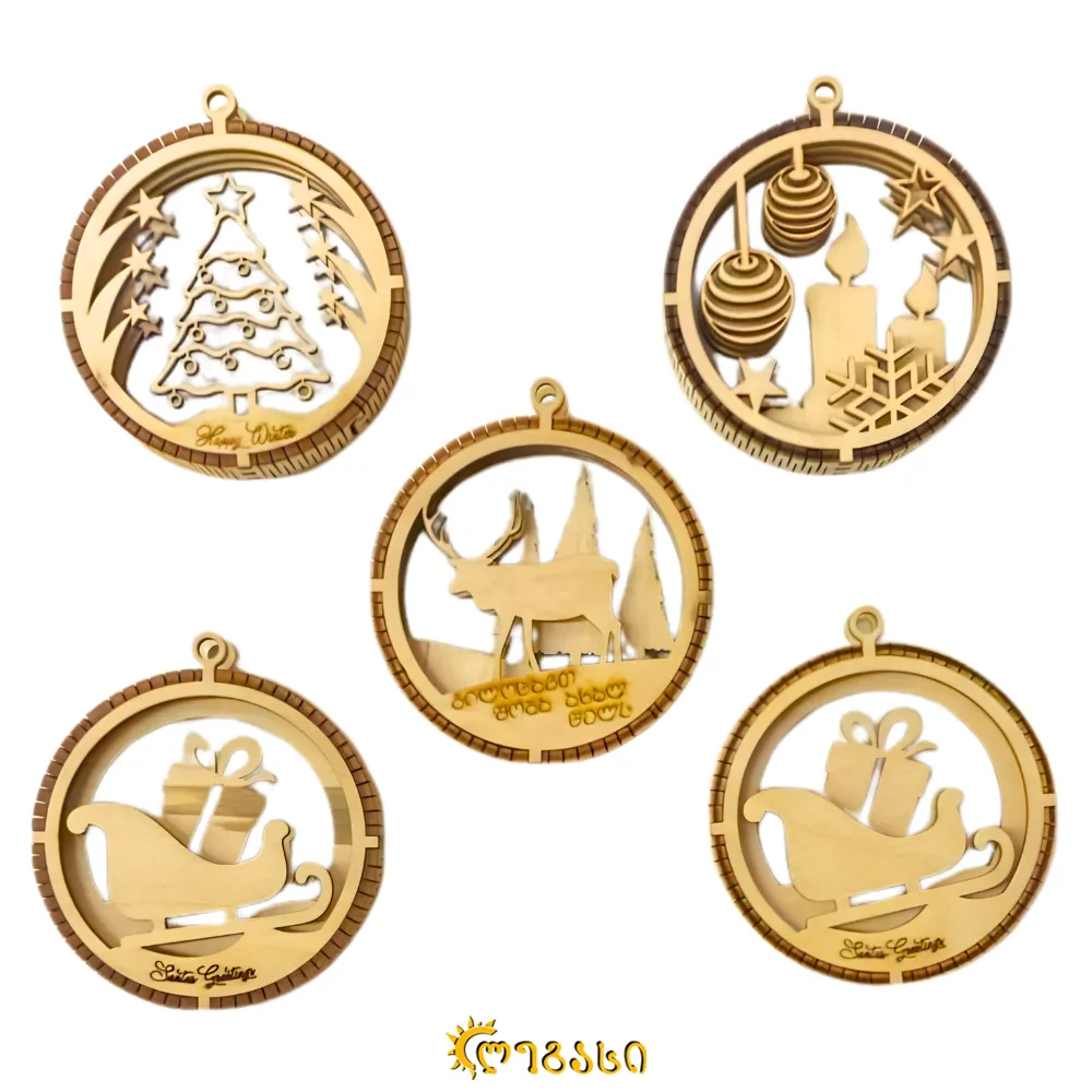 L260 - ხის საახალწლო სათამაშო სამფენიანი 8,5*9,5სმ (3მმ)