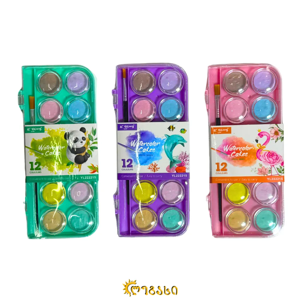 აკვარელი ფუნჯით (12 ფერი) WATERCOLOR CAKES: PASTEL SERIES