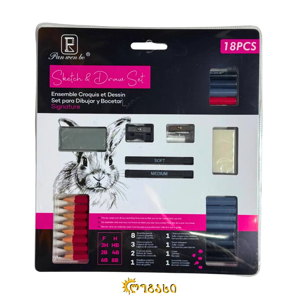 სამხატვრო ნაკრები SKETCH AND DRAW SET (18 PCS)