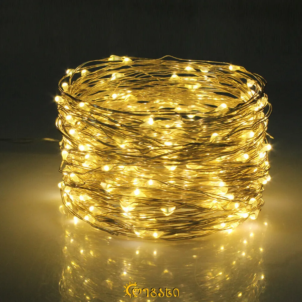 ნაძვის ხის თბილი გან. წვრილი 500-ნათ. 50 მეტ.პულტით