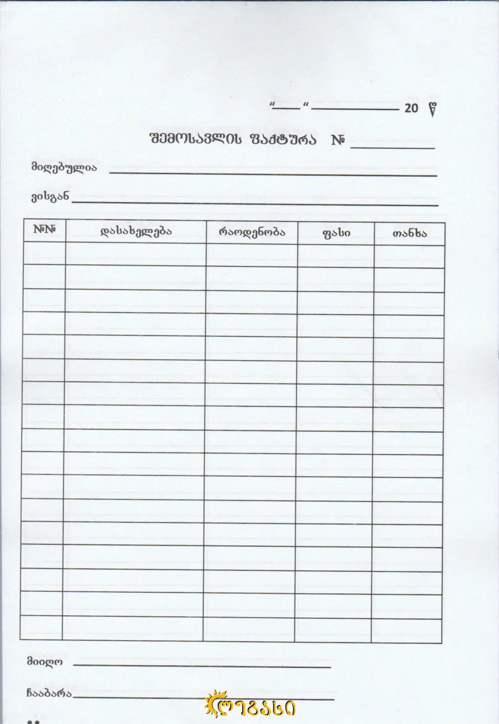 შემოსავლის ფაქტურა კოპირებით ზომა: 21*14სმ