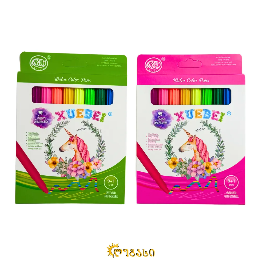 არის მწვანე და ვარდისფერი შეფუთვით.