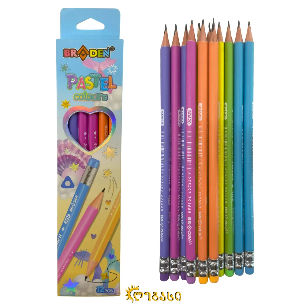 უბრალო ფანქარი ნომრიანი საშლელით 12-ც. HB