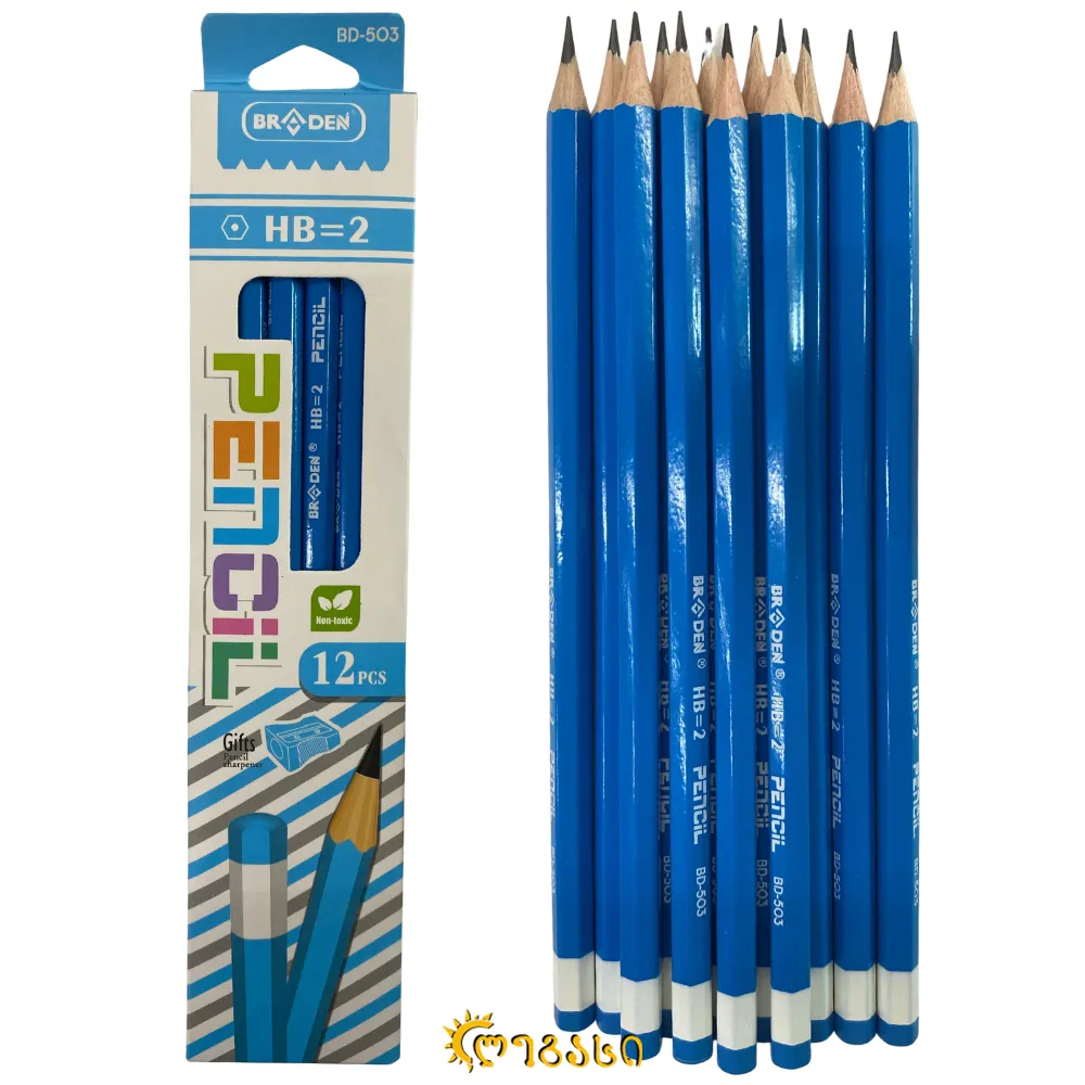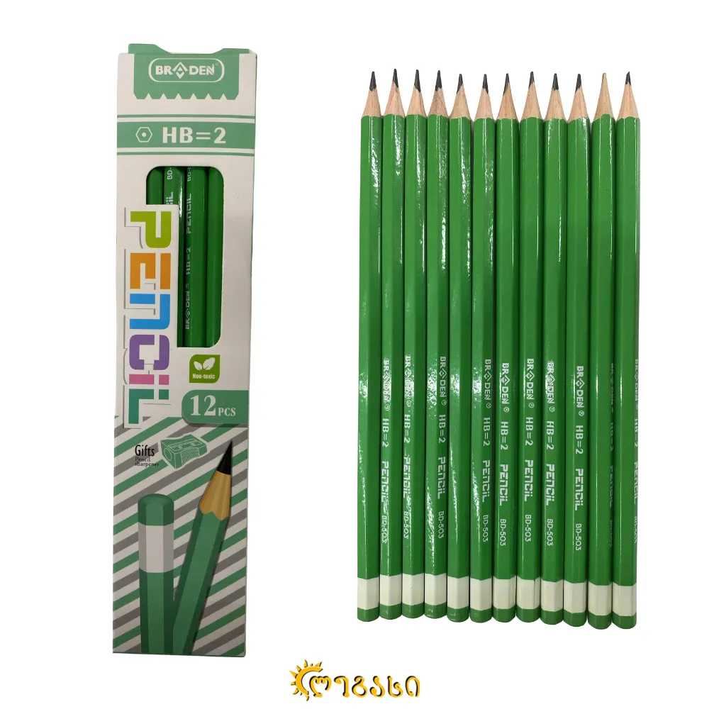 უბრალო ფანქარი ნომრიანი საშლელით 12 ცალი.