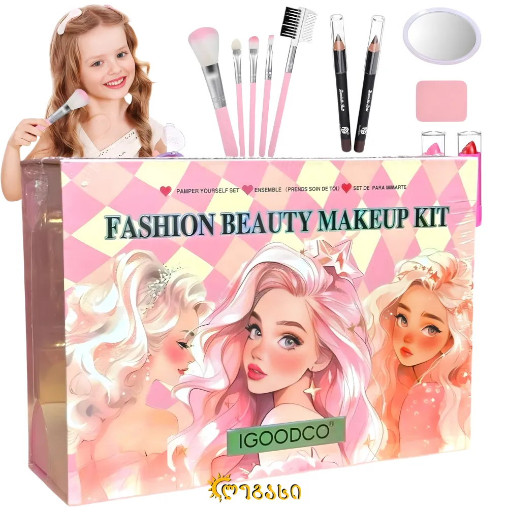 მაკიაჟის ნაკრები ბავშვებისთვის – კოსმეტიკური ყუთი ლამაზი ქეისით კომპლექტში შედის: ნაკრებში შედის: