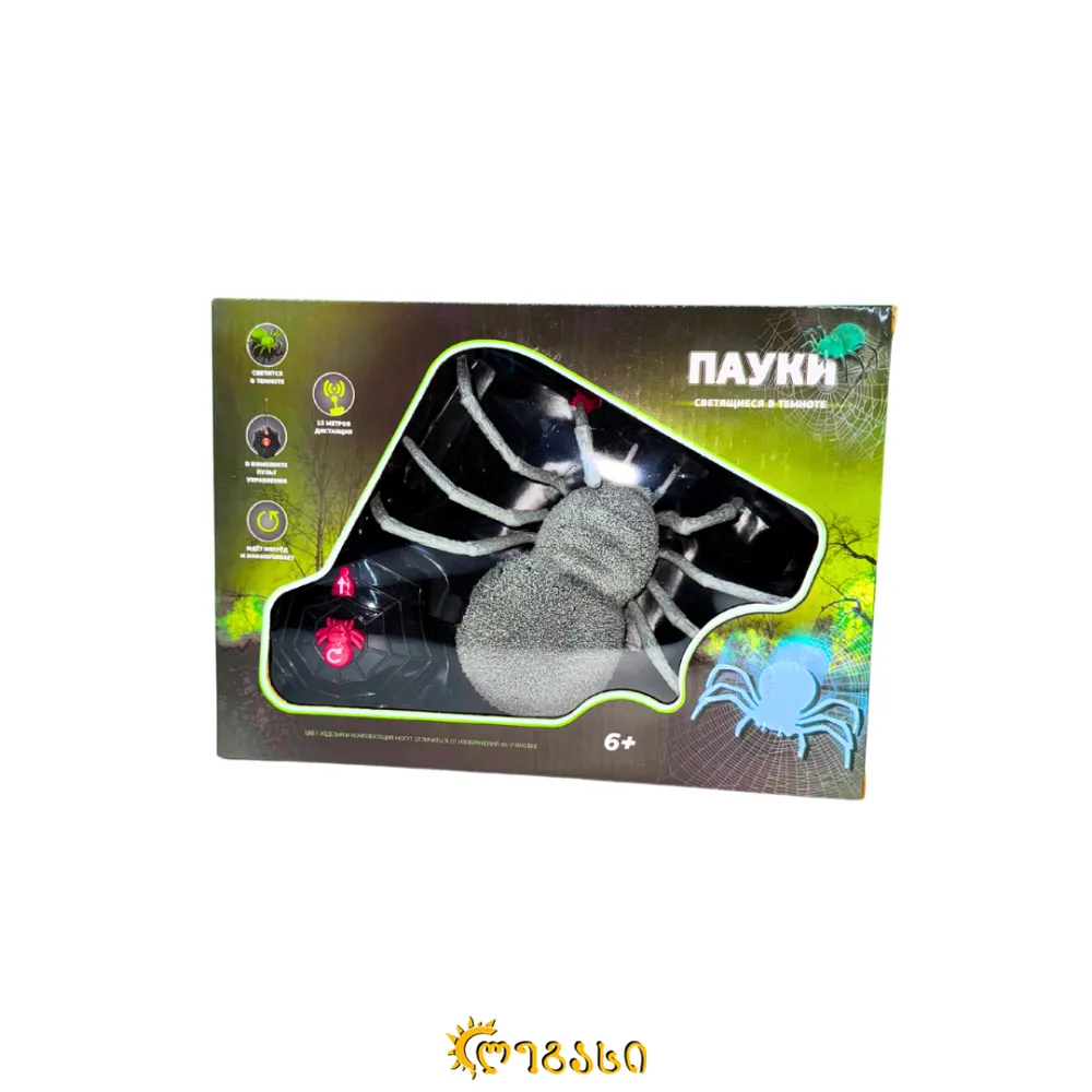 სათამაშო მანათობელი ობობა, რომელიც იმართება პულტით და გადაადგილდება.