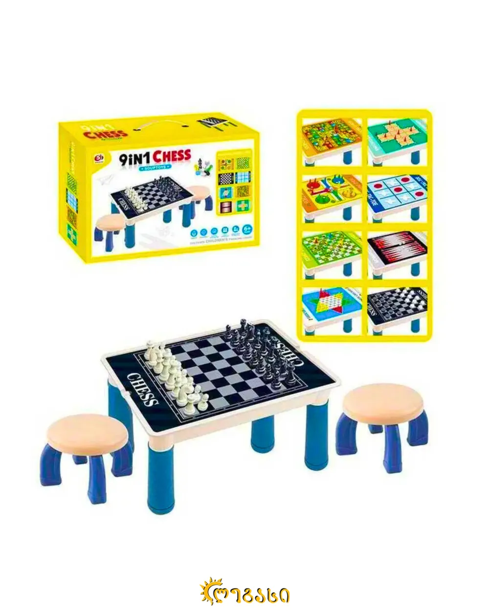 საბავშვო ჭადრაკი მაგიდით და სკამებით